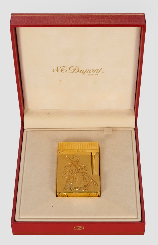 A Vintage Dupont gilt metal lighter. Manufacturer's mark. Original box and papers.