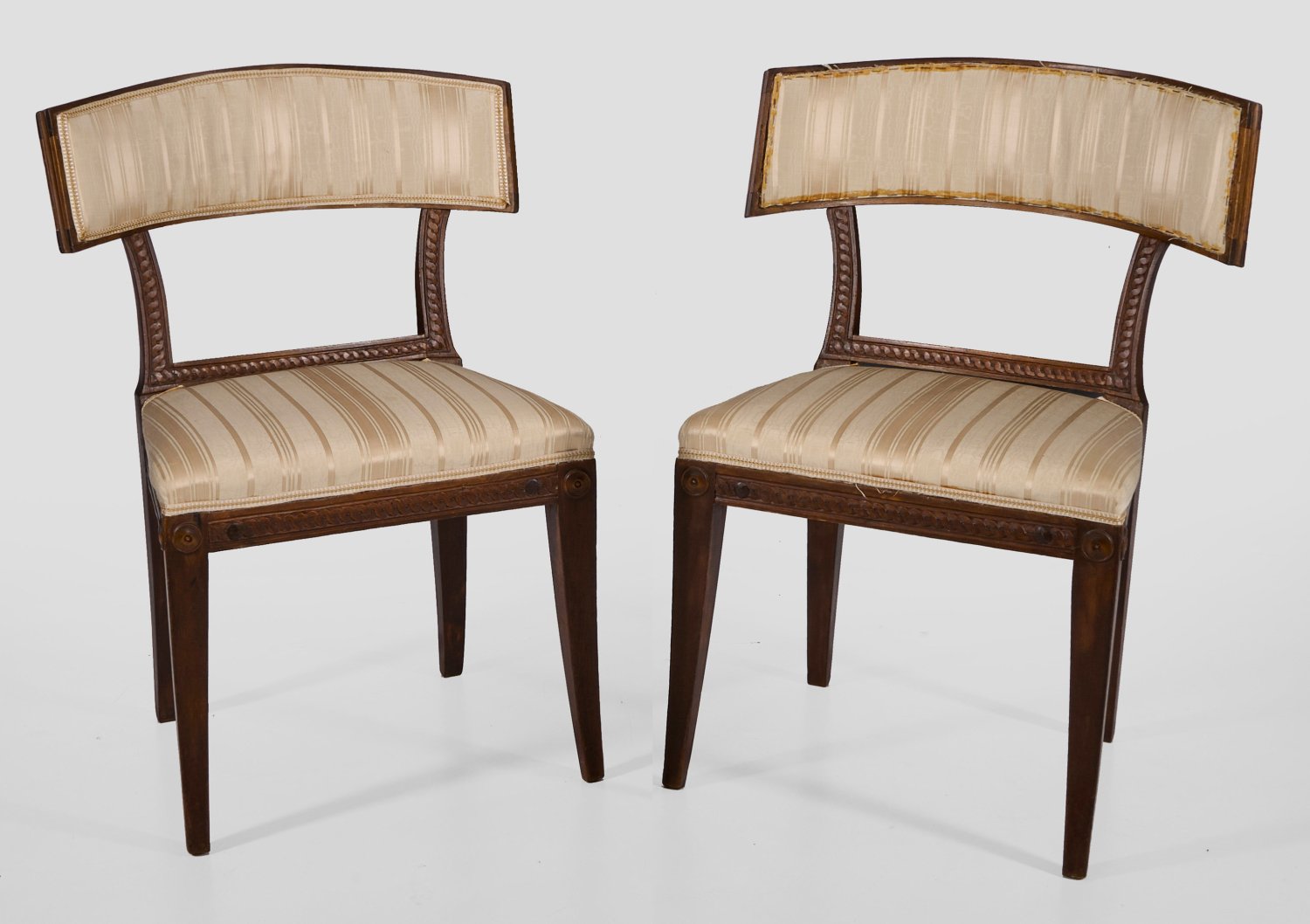 A pair of Swedish Gustavian walnut chairs.