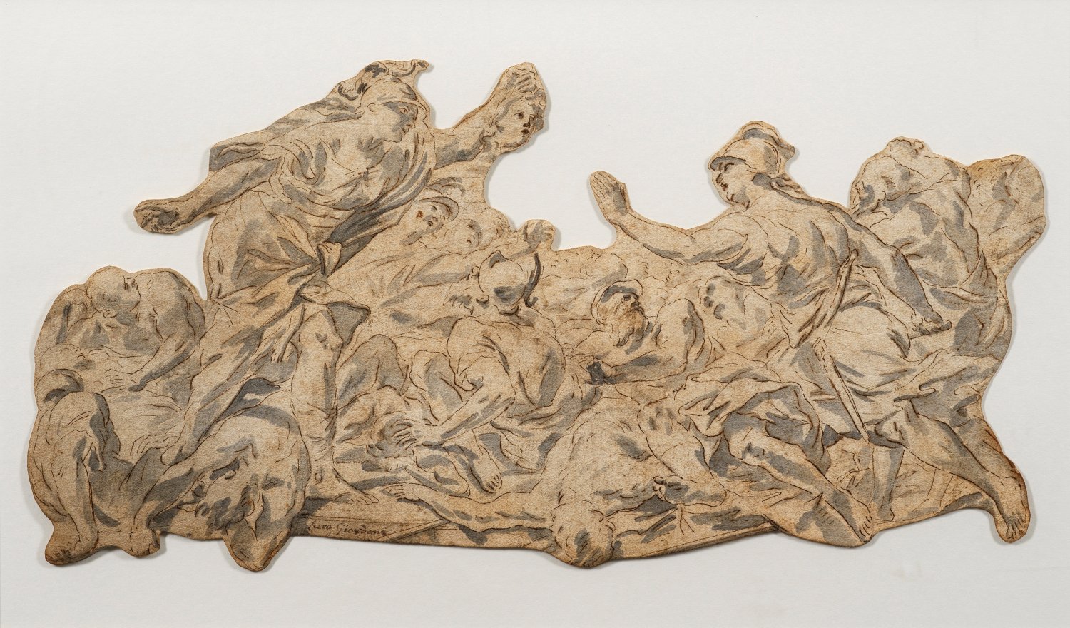 Attributed to Luca Giordano (1634 - 1705). Pen and ink wash on paper. Inscribed or signed "Luca Giordano". Minor light toning and stains.