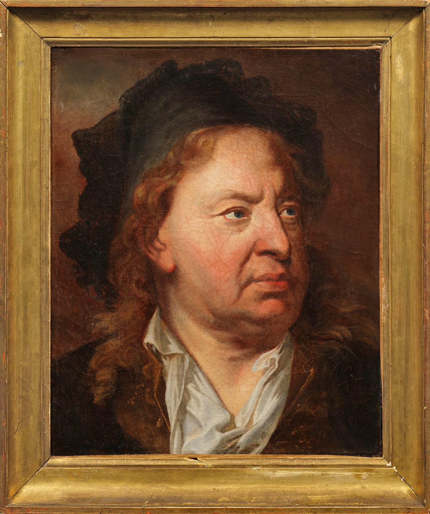 Auf dem vorliegenden Bildnis ließ sich Jabach in außergewöhnlich legerer, unprätentiöser Weise darstellen. Jabach (1618 Köln - 1695 Paris) war eine der schillerndsten und einflussreichsten Persönlichkeiten des 17. Jhs.; Er ließ sich 1638 in Paris nieder und nahm dort als großer Bankier, Unternehmer und passionierter, unersättlicher Kunstsammler eine herausragende Stellung ein. 1642 wurde Jabach Finanzverwalter von Kardinal Jules Mazarin, dem regierenden Minister Frankreichs, seit 1664 leitete er als erster Direktor die neugegründete französische Ostindische Compagnie. Zugleich pflegte Jabach als Mäzen lebhaften Umgang mit den führenden Künstlern seiner Epoche. 1637 gab er die berühmte "Kreuzigung Petri" bei Peter Paul Rubens für die Kirche St. Peter in Köln in Auftrag. Er selbst ließ sich mehrfach von Anthony van Dyck, Peter Lely und dem französischen Hofmaler Hyacinthe Rigaud malen, von Charles Lebrun 1660 in monumentalen Ausmaßen im Kreis seiner Familie. Jabach trug parallel hierzu bedeutende Kunstsammlungen zusammen, durch seine Hände gingen viele Meisterwerke der Renaissance und des Barock, die sich heute teilw. im Louvre befinden. Von dem Porträt sind eine Reihe sehr unterschiedlicher Versionen bekannt (siehe Perreau P.128/1-11). Öl/Lwd., doubl.; 46,5 cm x 38 cm. Rahmen.