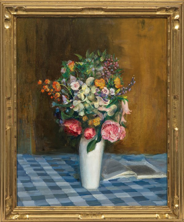 Stillleben mit Sommerblumenstrauß. Nissl studierte seit 1887 bei Ludwig Schmid-Reutte, Johann Caspar Herterich, Ludwig von Löfftz und Paul Hoecker an der Münchner Akademie. 1895 wurde er Mitglied der Münchner Secession, später auch der 1897 gegründeten Wiener Secession; 1911 wurde ihm der Professorentitel verliehen. Am rechten Bildrand sign.; Verso dat. 1911, außerdem Original-Etikett mit Titel u. Bez. "Rudolf Nissl München. 57 cm x 46 cm. Rahmen.