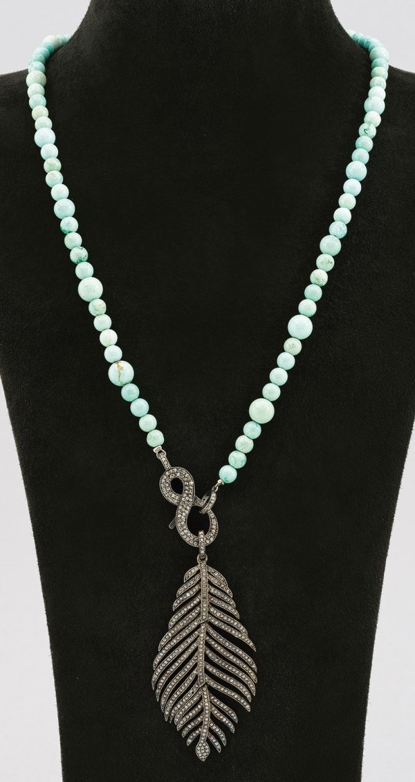Lot 895: Nevada-Türkiskette mit Diamant-Feder-Anhänger