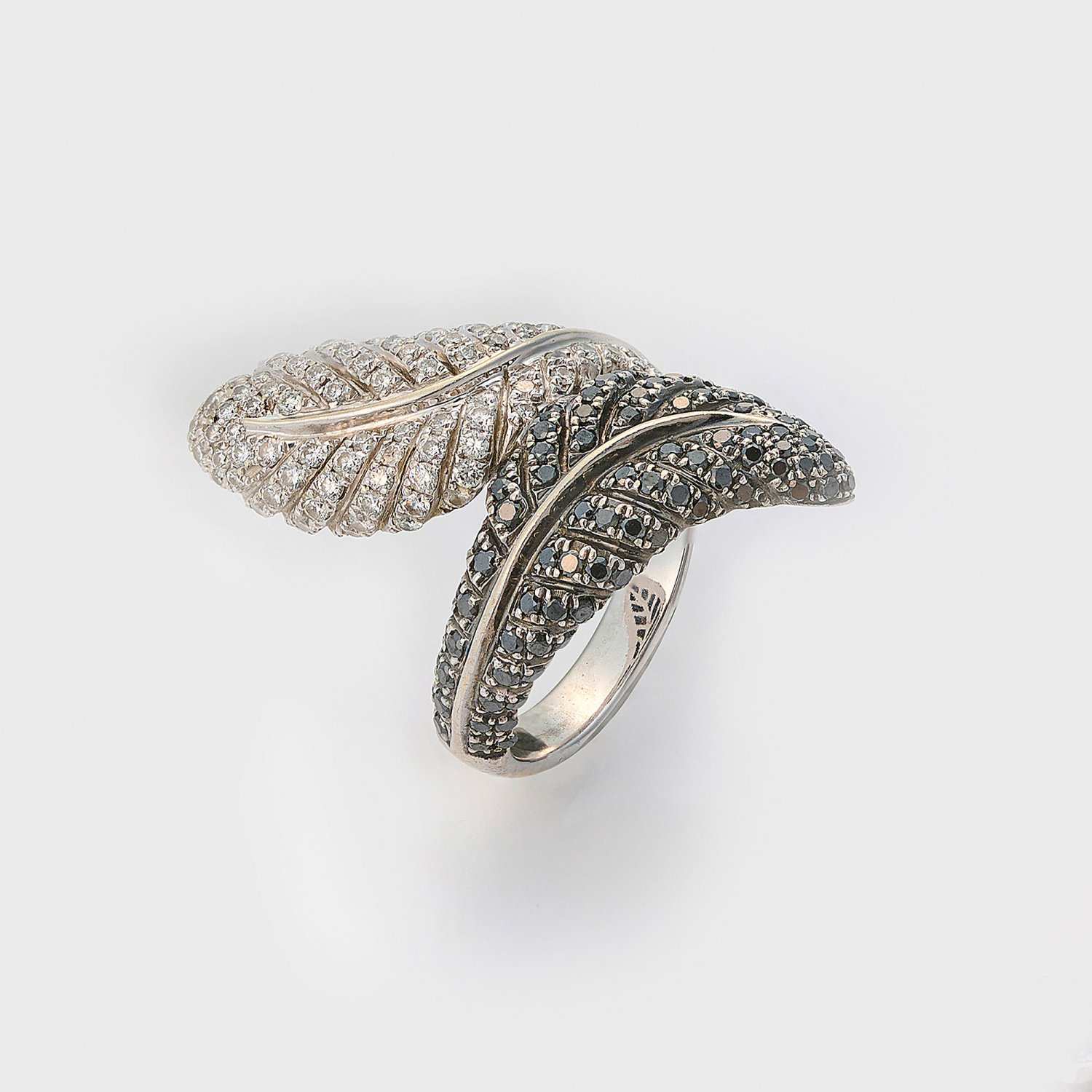 Ring by Victoria Casal set with white and black diamonds approx. 1,60 ct. (G-H/vsi), in 18 k white gold. Manufacturer's mark.
