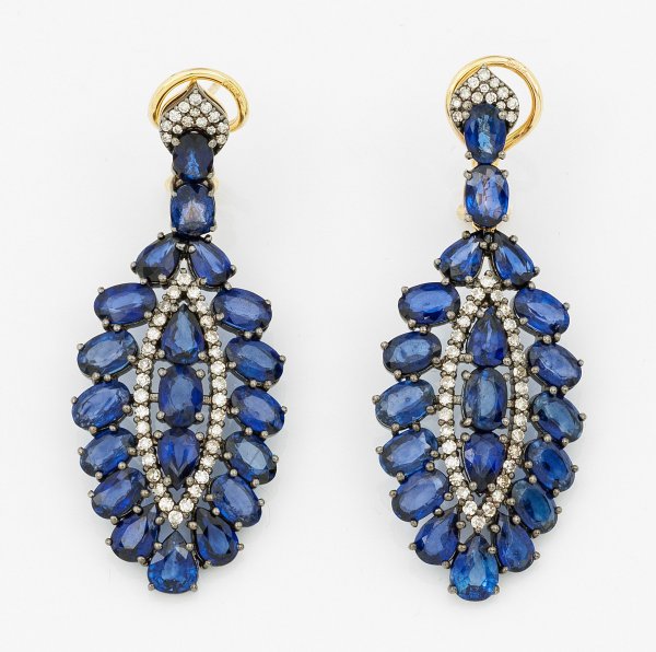 Lot 910: Paar glamouröse Saphir-Ohrgehänge