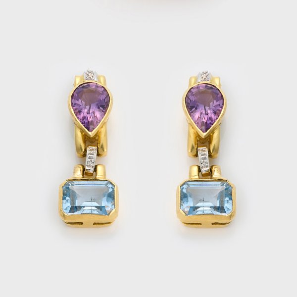 Lot 999: Paar Amethyst-Topas-Ohrringe
