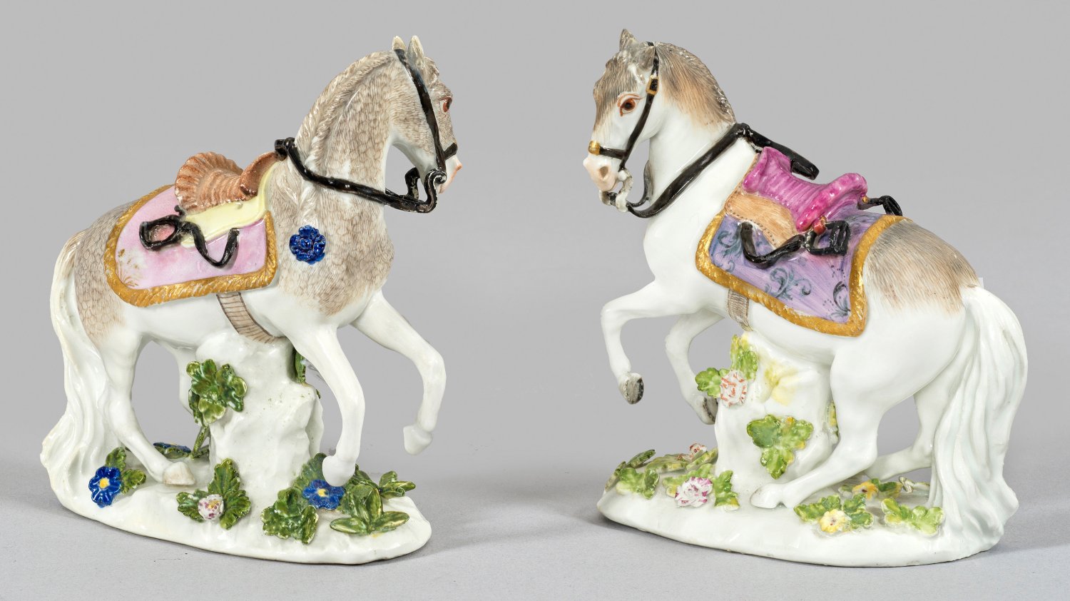 Lot 2229: Paar seltene gesattelte Pferde von Meissen