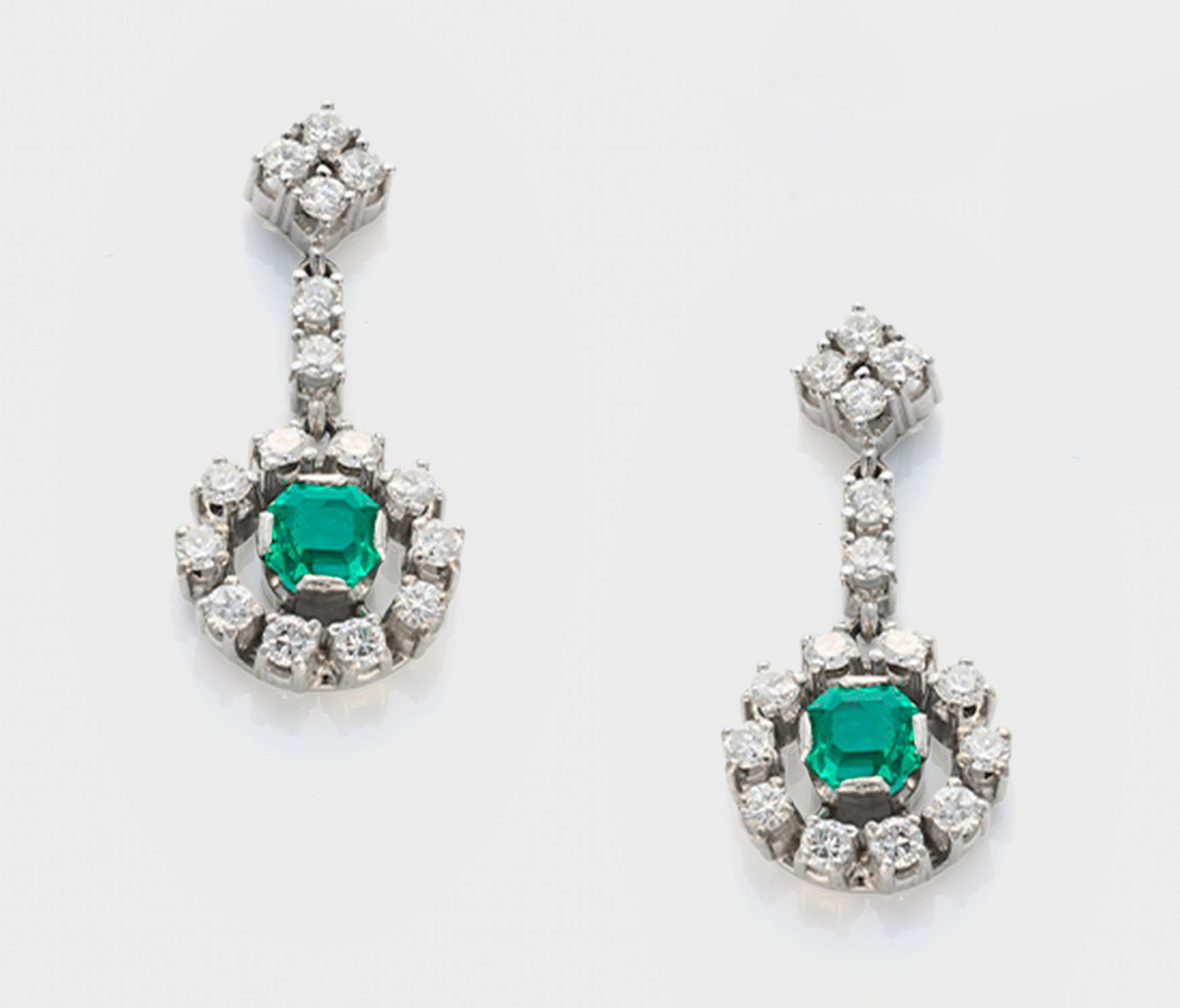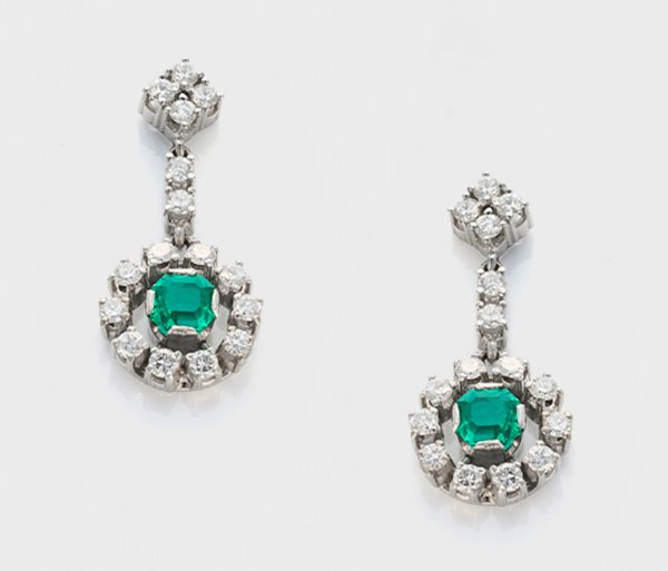 Lot 1136: Paar Smaragd-Brillant-Ohrgehänge von Juwelier Stern