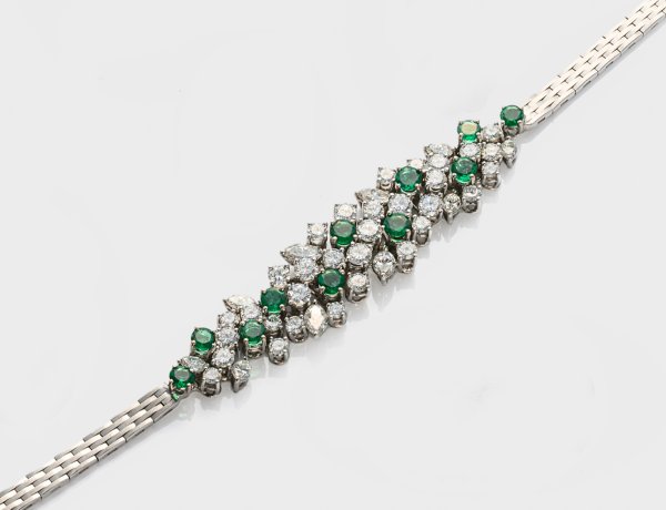 Lot 1162: Cocktail-Diamant-Armband mit kolumbianischen Smaragden