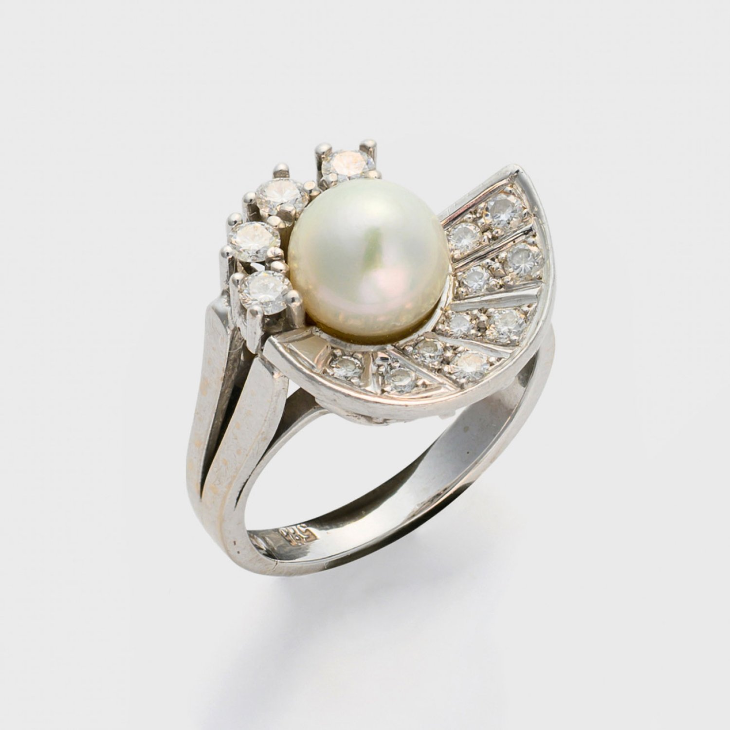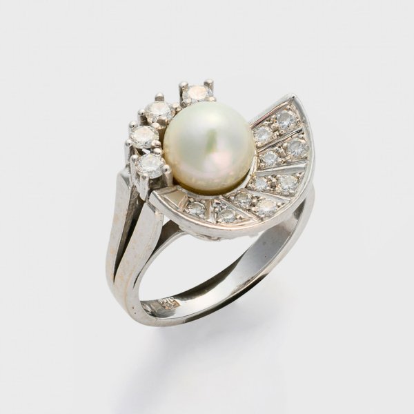 Lot 1169: Charmanter Perl-Brillantring aus den 1940er Jahren