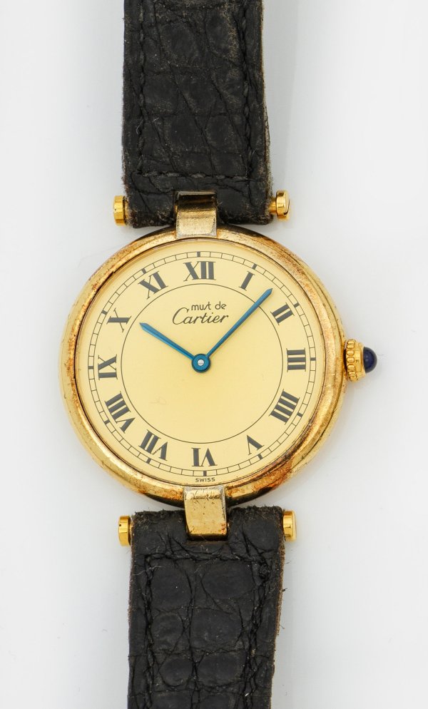 Wristwatch by Cartier, quartz movement, in silver gilded. Manufacturer's mark.