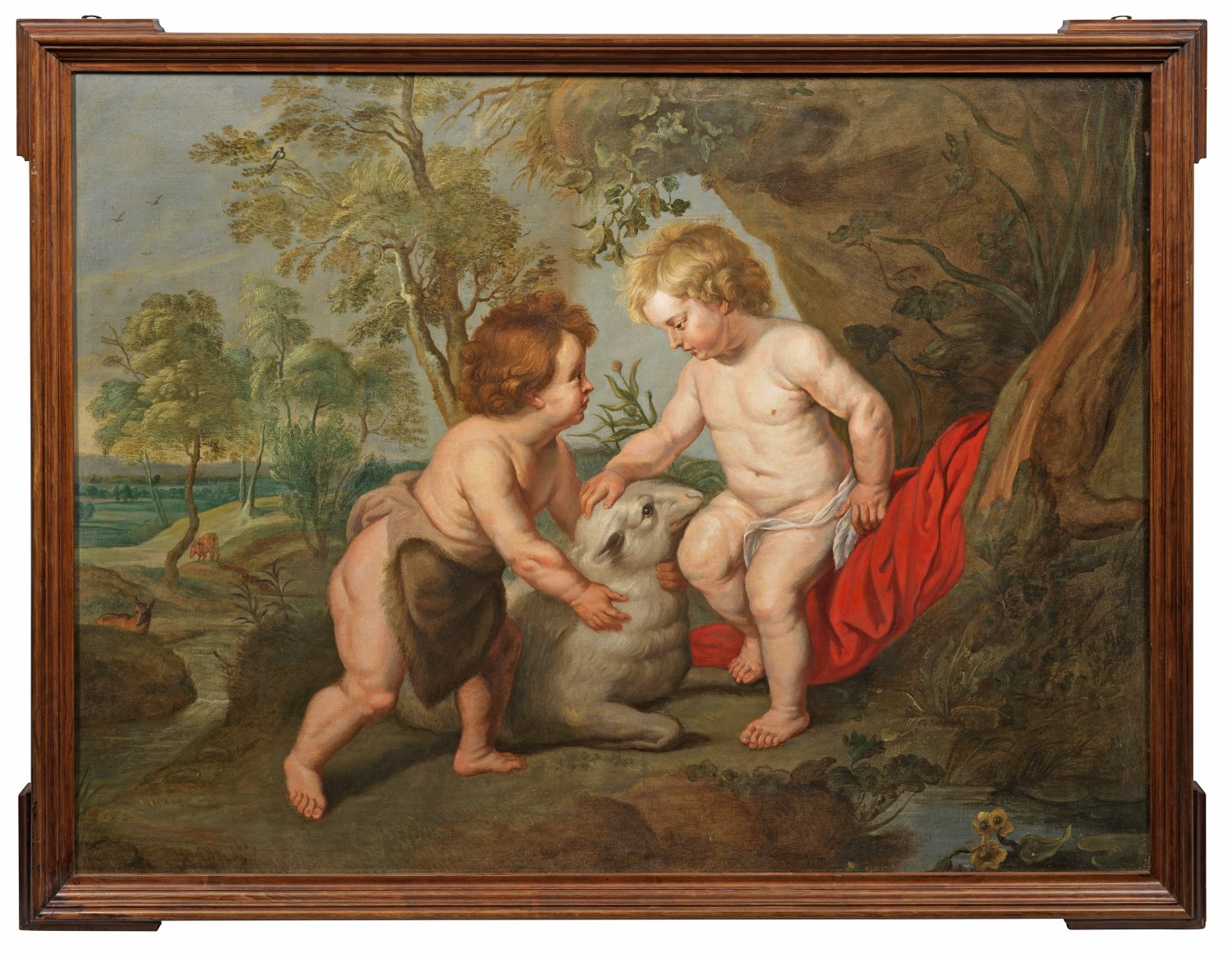 Christus mit Johannes dem Täufer als Kinder in einer arkadischen Waldlandschaft
