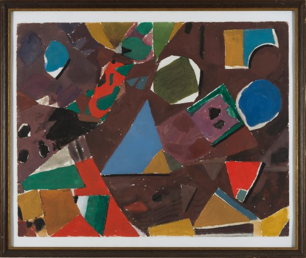 Flächig komponierte, abstrakte Arbeit Schöllkopfs, der 1909-1914 an der Stuttgarter Akademie studierte und sich ab 1913 an zahlreichen Ausstellungen, u. a. in der Münchener Secession, beteiligte. Die Werke der Fauvisten - insbesondere von Henri Matisse und Raoul Dufy - beeinflussten Schöllkopfs künstlerisches Schaffen nachhaltig. Aquarell über Bleistift/Bütten. L. u. sign. und dat. 1973. 52,3 cm x 65,3 cm. Rahmen.