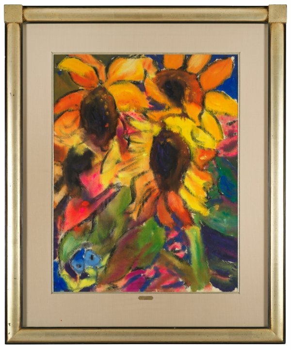 Expressionistisches, leuchtend koloriertes Blatt Malskats in der Tradition von Emil Nolde. Malskat begann zunächst eine Malerlehre und studierte dann an der Akademie in Königsberg. Berühmtheit erlangte er durch seine im gotischen Stil gemalten Fresken im Schleswiger Dom (1937/38) und in der Lübecker Marienkirche (1948-1951) sowie durch Fälschungen bedeutender moderner Künstler und Aquarelle im Stil von Emil Nolde. Aquarell/Bütten. R. u. sign.; 69 cm x 53 cm (Passepartoutausschnitt). Rahmen.