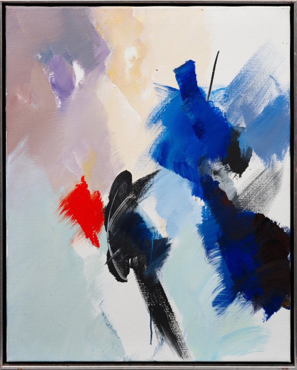 Um 1990 entstandene Arbeit Miottes, einem der bedeutendsten Künstler des Informel. Miotte besuchte seit 1947 regelmäßig die Ateliers von Othon Friesz und Ossip Zadkine in Montparnasse, während einer Italien-Reise 1948 lernte er Piero Dorazio und andere Künstler der Gruppe "Movimento per l’arte concreta" kennen. 1949/50 richtete sich Miotte ein Atelier in Meudon ein, wo er die Bekanntschaft mit Hans Arp und Sam Francis machte. In dieser Zeit begann sich Miotte der abstrakten Kunst zuzuwenden. 1953 ging er nach Bologna, wo er sich mit seinen Künstlerfreunden André Lanskoy und Serge Poliakoff traf. 1961 reiste er erstmals nach New York, begegnete dort Robert Motherwell und Mark Rothko. 1963 bezog Miotte sein erstes Atelier in Pignans, 1970 wurde er Mitglied der Künstlervereinigung Salon des Réalités Nouvelles. Miotte ist in vielen bedeutenden Museen wie dem Museum of Modern Art in New York, Museum Ludwig in Köln und Musée d’Art Moderne de la Ville de Paris vertreten. Acryl/Lwd.; Verso auf einem Etikett betitelt "Suite et fin". 80,5 cm x 65 cm. Rahmen.