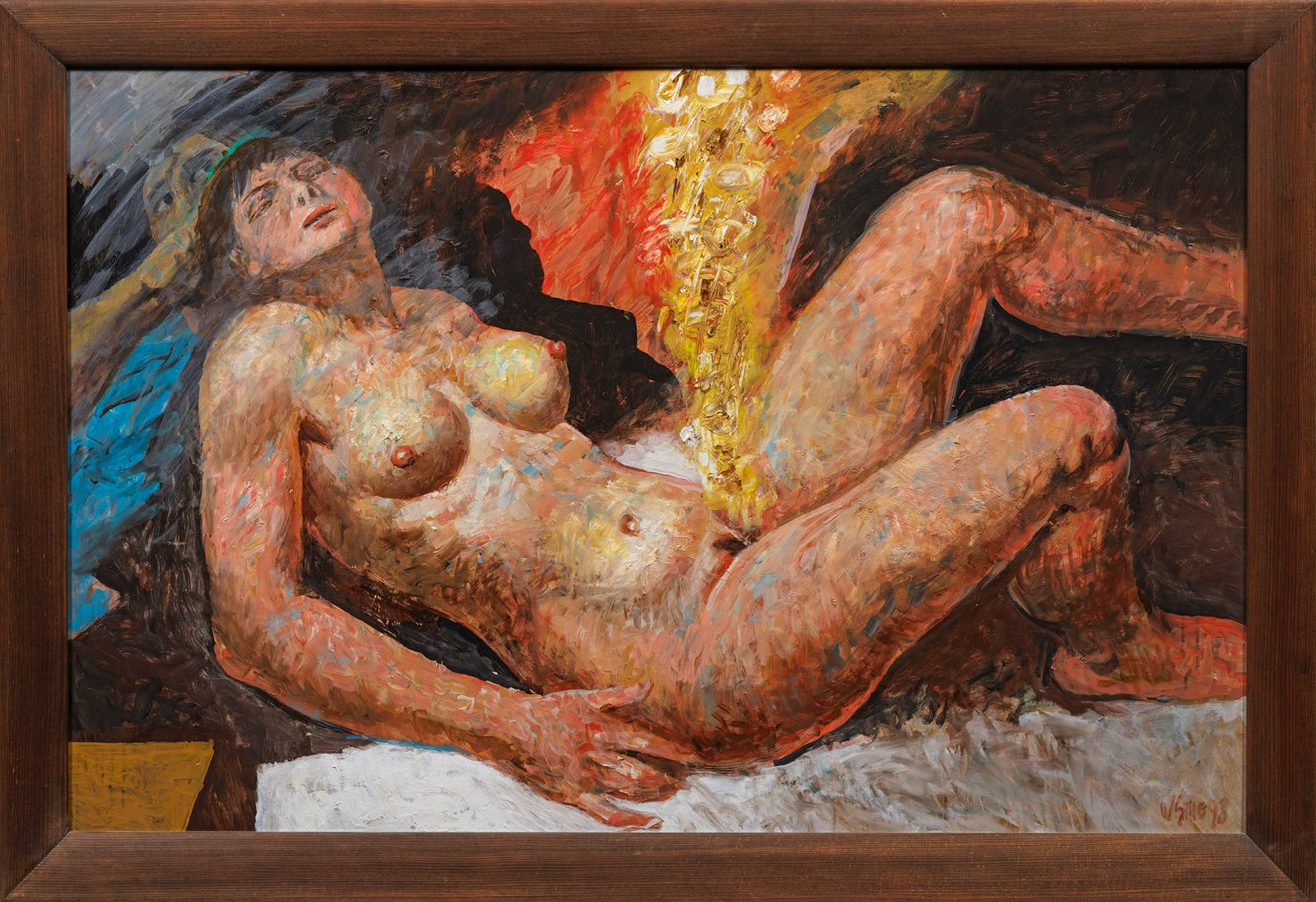 Mit seiner expressiv-realistischen, teilw. mit pastosem Farbauftrag ausgeführten, lasziv-erotischen, den Goldregen empfangenden Danae, griff Sitte ein altes Thema der griechischen Mythologie wieder auf, das Künstler seit der Renaissance immer wieder faszinierte - sei es Tizian oder Gustav Klimt. Auch im Oeuvre Sittes selbst gehören erotische Darstellungen in geradezu barocker Fleischlichkeit und Fleischeslust zu den zentralen Motiven, sowohl in Gemälden als auch in Druckgrafiken. Neben den Begründern der Leipziger Schule - Bernhard Heisig (1925 - 2011), Wolfgang Mattheuer (1927 - 2004) und Werner Tübke (1929 - 2004) - gehörte Sitte als "Staatsmaler" zugleich zu den bedeutendsten, prominentesten, international bekanntesten und umstrittensten Vertretern der Bildenden Kunst in der DDR. 1951 erhielt Sitte einen Lehrauftrag an der Kunsthochschule Burg Giebichenstein in Halle an der Saale, 1959 wurde er dort zum Professor berufen. 1969 wählte man ihn zum Ordentlichen Mitglied der Deutschen Akademie der Künste, welches er bis 1991 war; 1974-1988 wirkte er auch als Präsident des Verbandes Bildender Künstler der DDR (VBK-DDR). Wegen seines Bekenntnisses zum Kommunismus, seiner Parteikarriere in der SED und seiner widersprüchlichen Haltung zur SED-Diktatur, lösten Sittes Werke und Ausstellungen nach der Wiedervereinigung allerdings zuweilen größere öffentliche Diskussionen aus, obgleich er auch einer der einflussreichsten Verteidiger einer gewissen Kunstfreiheit in der DDR war und seine Arbeiten oft ganz und gar nicht den parteioffiziellen Vorstellungen eines "Sozialistischen Realismus" entsprachen. Öl/Hartfaser. R. u. sign. u. dat. (19)98. Verso betitelt. 75 cm x 115 cm. Rahmen.
