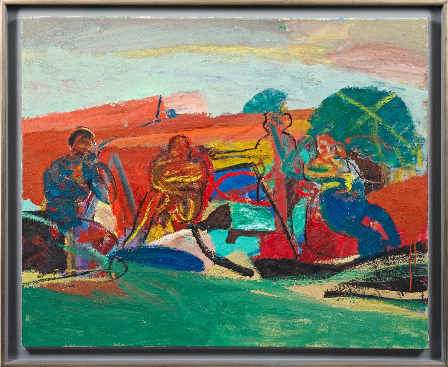 Mit furiosem Duktus gemalte Arbeit Köhlers, der dem Neoexpressionismus zugerechnet werden kann und zu den bedeutenden Repräsentanten neofigurativer Formensprache deutscher Gegenwartskunst zwischen Abstraktion und Figuration zählt. Köhlers künstlerische Ausbildung begann beim Max Beckmann-Schüler Theo Garve und bei Heinz Battke an der Städelschule in Frankfurt am Main, 1957-1963 studierte er an der Münchener Akademie der Bildenden Künste, hauptsächlich bei Erich Glette, 1958 besuchte er die von Oskar Kokoschka in Salzburg veranstaltete Internationale Sommerakademie "Schule des Sehens". In München war Köhler Mitbegründer der Künstlergruppen "WIR" (1959-1965), "SPUR-WIR" (1965-1966) und "GEFLECHT" (1966-1968), zu deren Kreis u. a. Lothar Fischer, Heimrad Prem, Helmut Sturm und HP Zimmer gehörten. Seit 1969 lebte und arbeitete Köhler in Hamburg. Öl/Lwd.; Verso sign., dat. 27. April (20)01 u. betitelt. 80 cm x 100 cm.