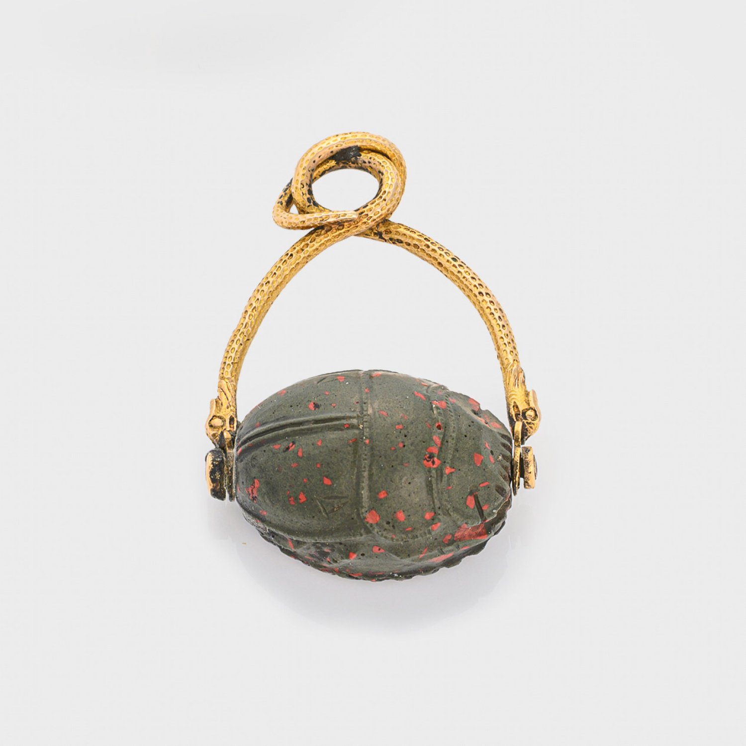 Lot 833: Heliotrop-Siegel-Anhänger-"Skarabäus mit Pferd"