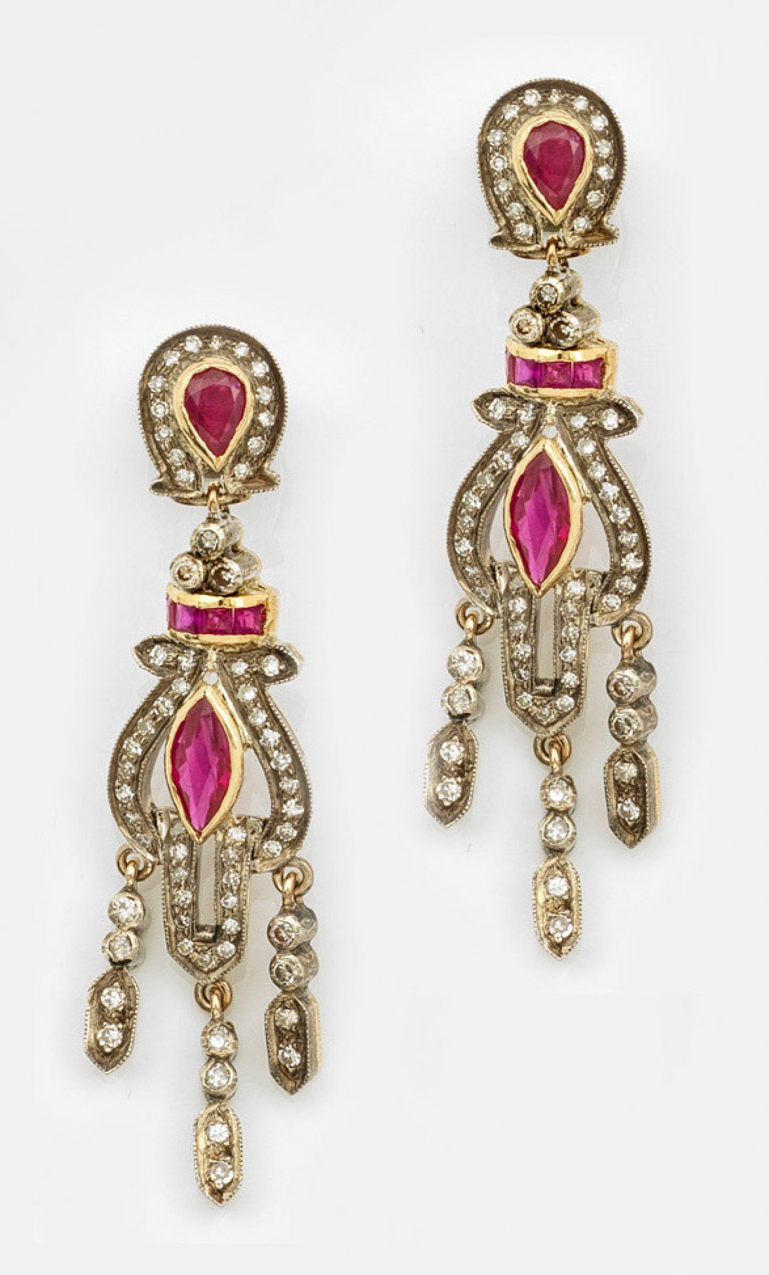 Lot 858: Paar Belle Epoque Rubin-Ohrgehänge