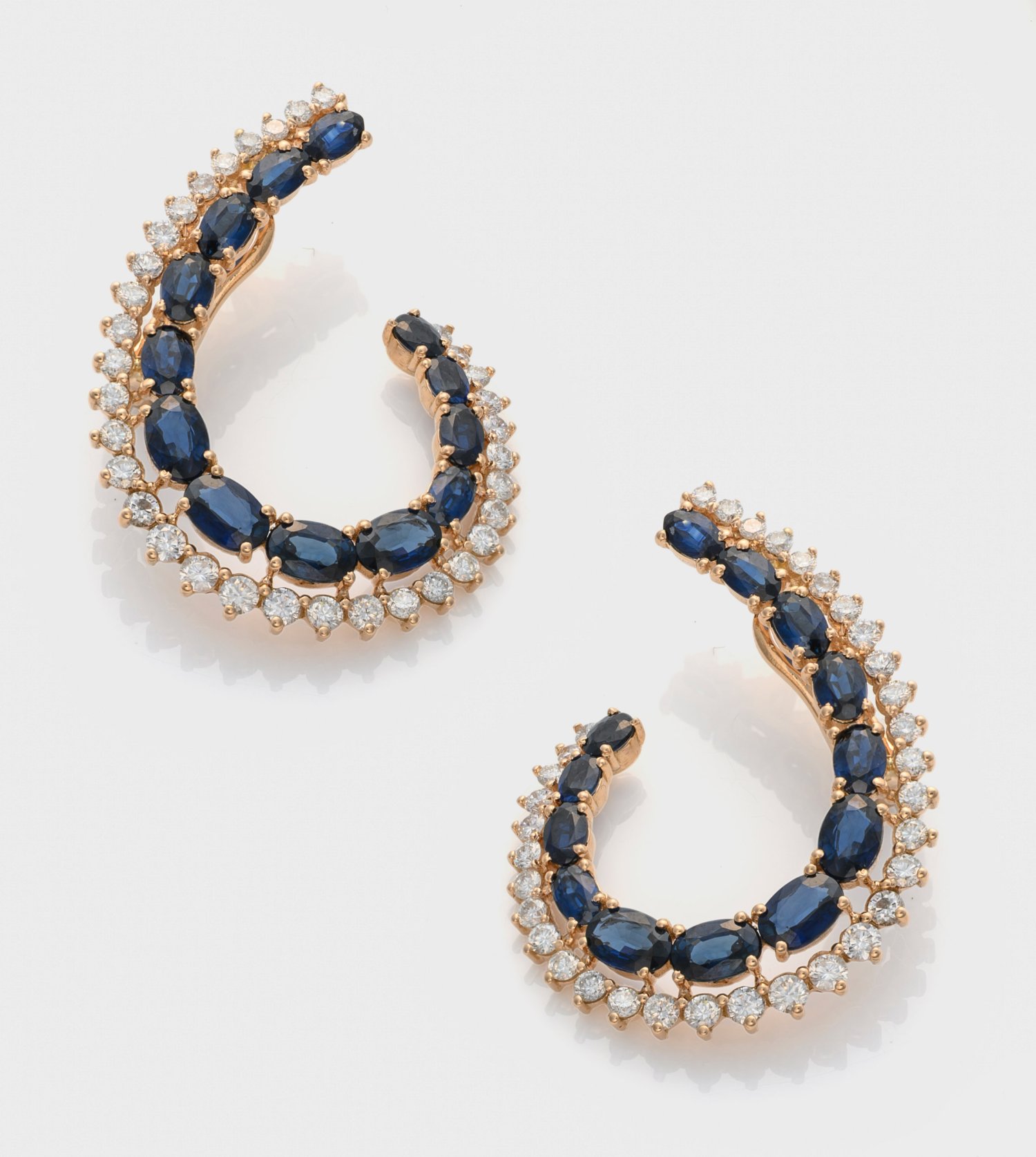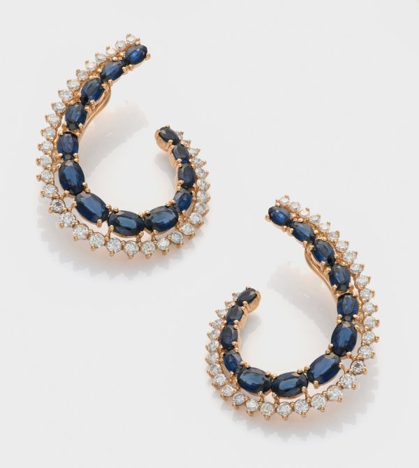 Lot 875: Paar glamouröse Saphir-Brillant-Creolen