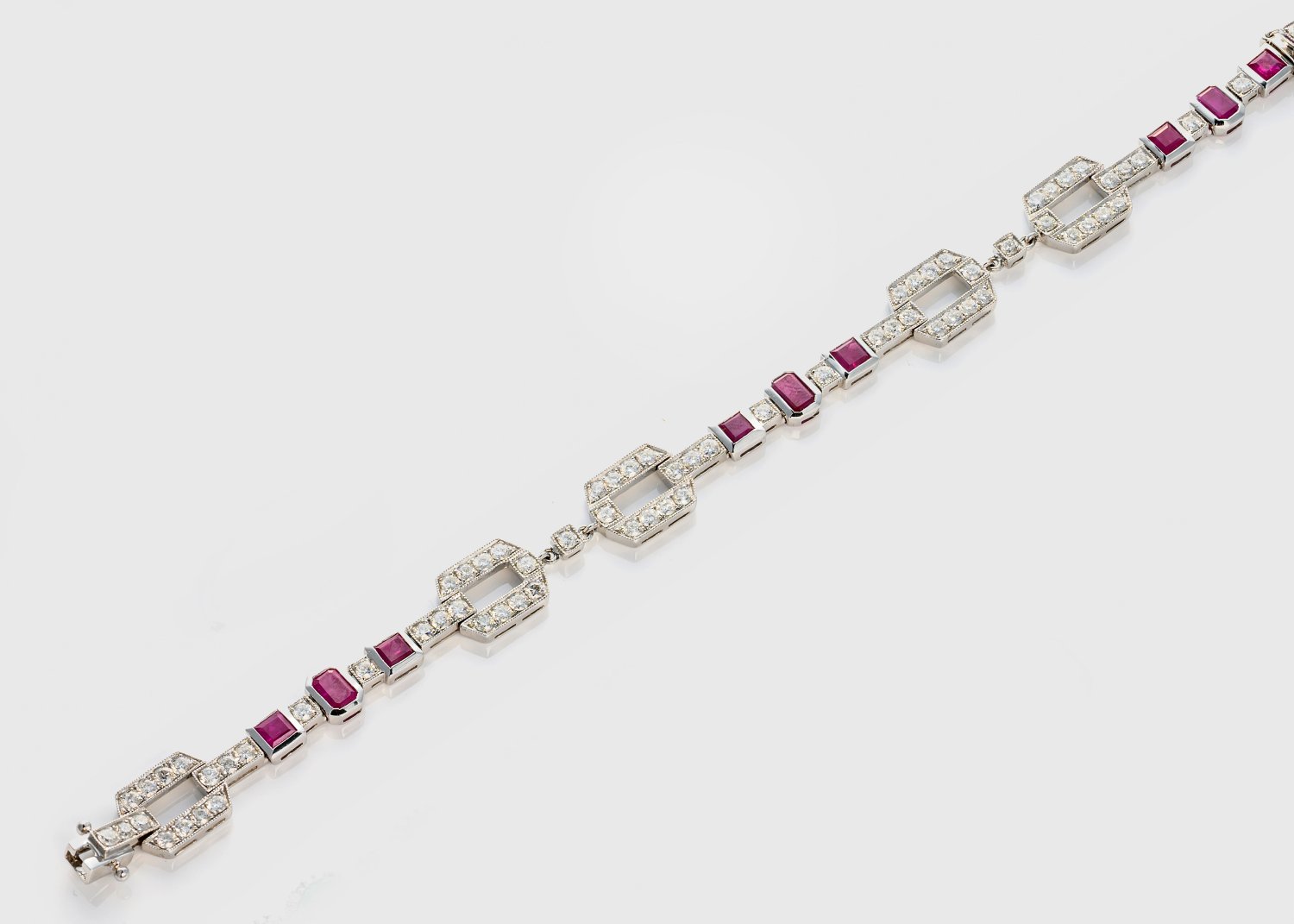 Lot 928: Rubin-Brillant-Armband im eleganten Art Déco-Stil