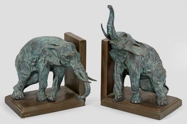 After Ary-Jean-Leon Bitter (1883 - 1973). Two patinated bronze elephants as figural bookends. Posthumous contemporary casts, 21st century.