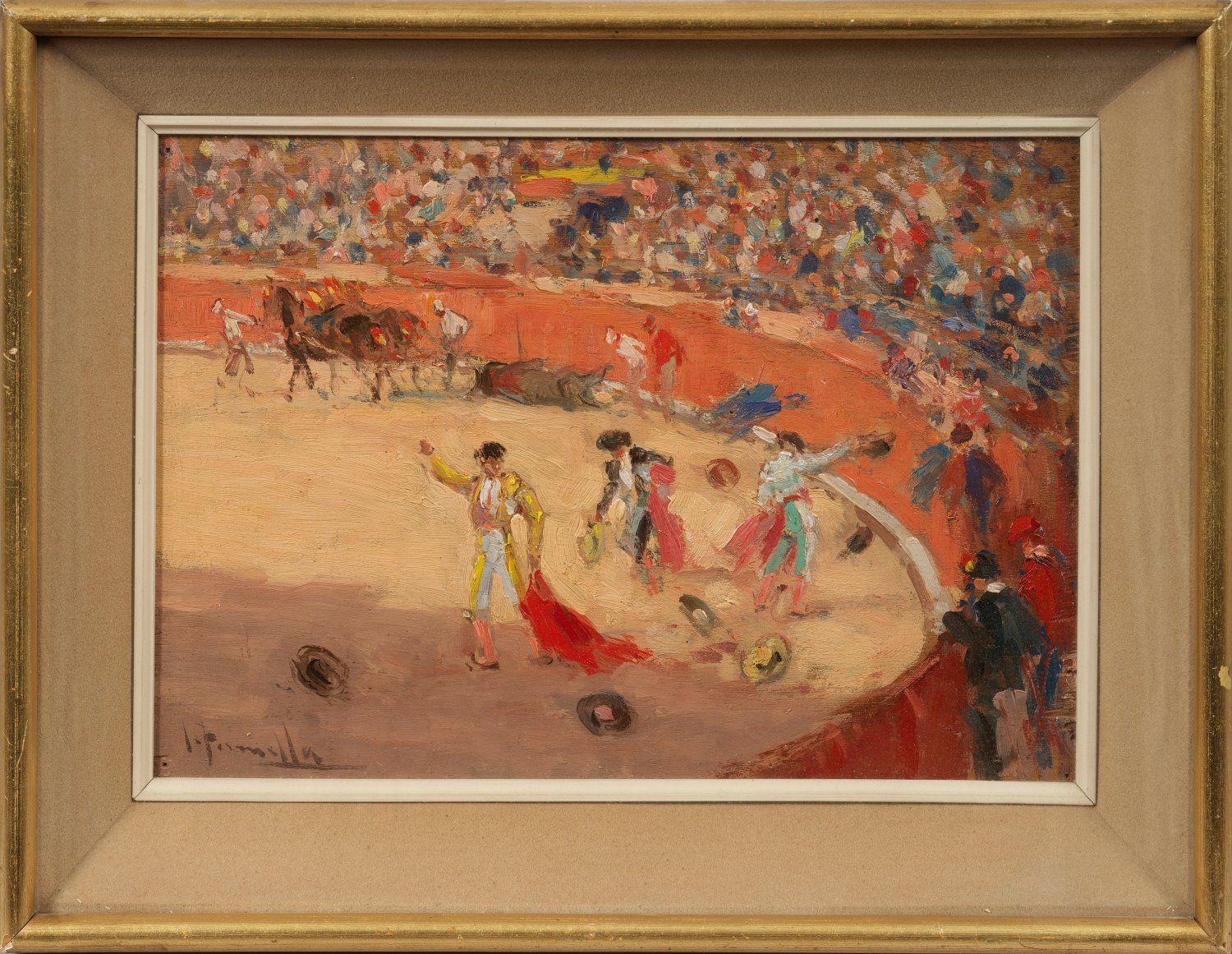 Der Künstler war ein Neffe und Schüler von Segundo Matilla Marina (1862 - 1937), lernte außerdem beim katalanischen Maler Santiago Rusiñol (1861 - 1931). 1916 hatte er seine erste Einzelausstellung in Barcelona, seitdem stellte er vielfach in seiner Heimatstadt aus, aber auch in Madrid, Palma, Saragossa, Bordeaux und Biarritz. Außer impressionistischen Landschaften malte er mit Vorliebe Stierkampfszenen und arbeitete als Stierkampfillustrator für die Publikationen "El Día Gráfico" und "La Noche". Öl/Holztafel. L. u. sign.; 21 cm x 30 cm. Rahmen.