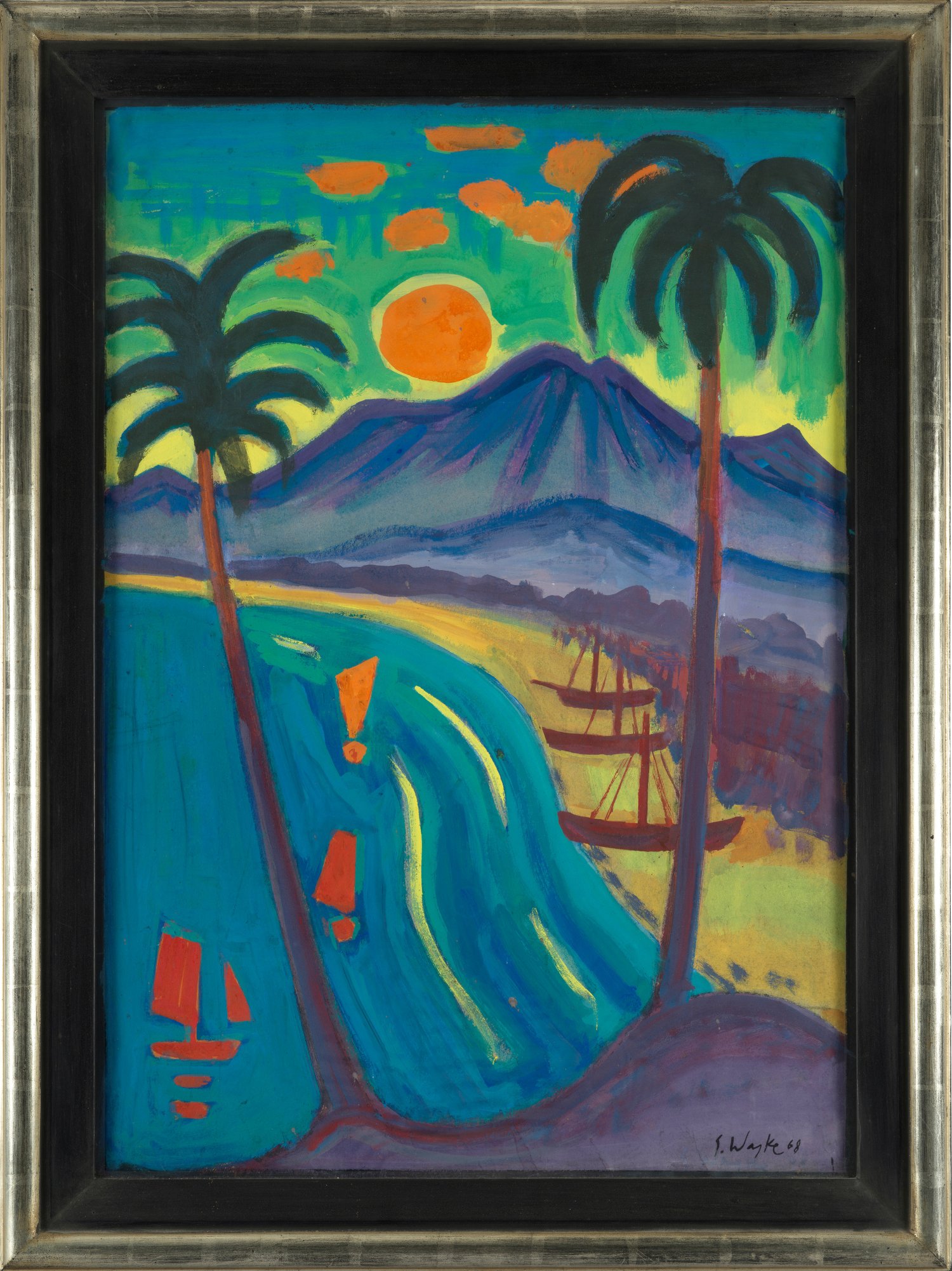 Waske gehörte zur ersten Expressionisten-Generation und debütierte 1910 auf der Ausstellung "Zurückgewiesene der Secession Berlin 1910", neben den "Brücke"-Malern Max Pechstein, Otto Mueller, Erich Heckel, Karl Schmidt-Rottluff und Ernst Ludwig Kirchner. Seit 1912/13 beteiligte er sich an vielen Ausstellungen in Berlin und anderen Städten, 1919 und 1924 erschienen Artikel über ihn in den maßgeblichen Kunstzeitschriften "Deutsche Kunst und Dekoration" und "Die Kunst für alle". Nach der NS-Zeit und dem II. Weltkrieg konnte Waske, wie viele Maler der verschollenen Generation nicht mehr an die alten Erfolge vor 1933 anknüpfen. Öl/Karton. R. u. sign. u. dat. (19)68. 83 cm x 59 cm. Rahmen.