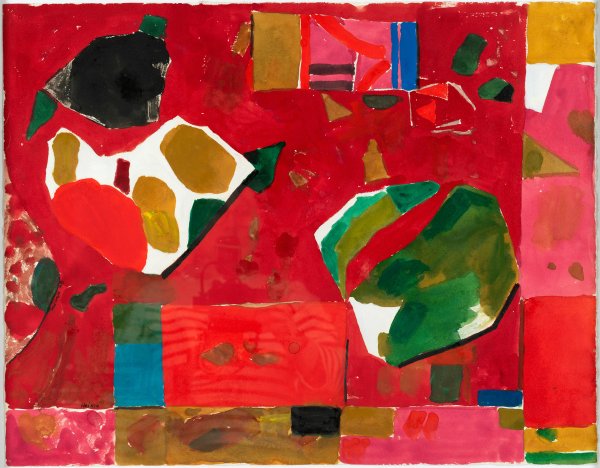 In leuchtendem, mediterranem Kolorit gemalte, flächig angelegte Komposition, in der der Einfluss der Fauvisten Henri Matisse und Raoul Dufy deutlich wird. Schöllkopf studierte 1909-1914 an der Stuttgarter Akademie, insbesondere bei Christian Landenberger, und beteiligte sich ab 1913 an zahlreichen Ausstellungen, u. a. in der Münchener Secession. Aquarell über Bleistift/Bütten. L. u. sign. und dat. 1973. Blatt 47,5 cm x 60. Rahmen.