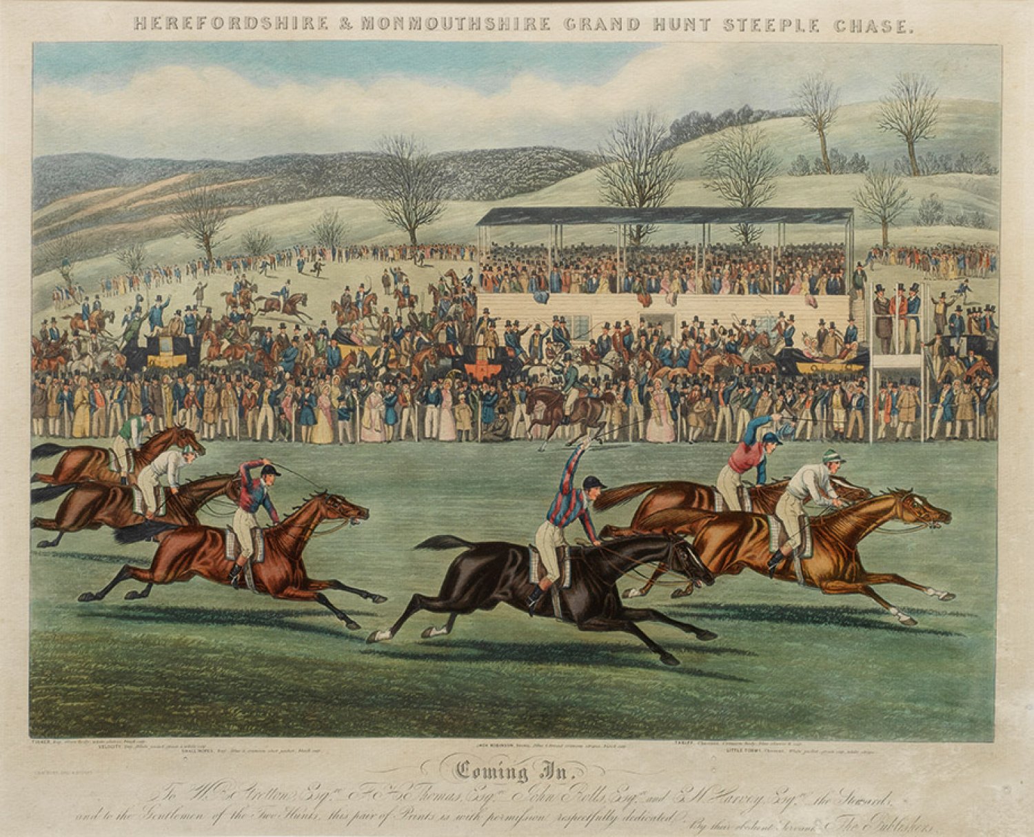 "Herefordshire & Monmouthshire grand hunt steeple chase - Coming in" und "Moores's Tally Ho! to the Sports. The Noble Tips.". Originaltitel