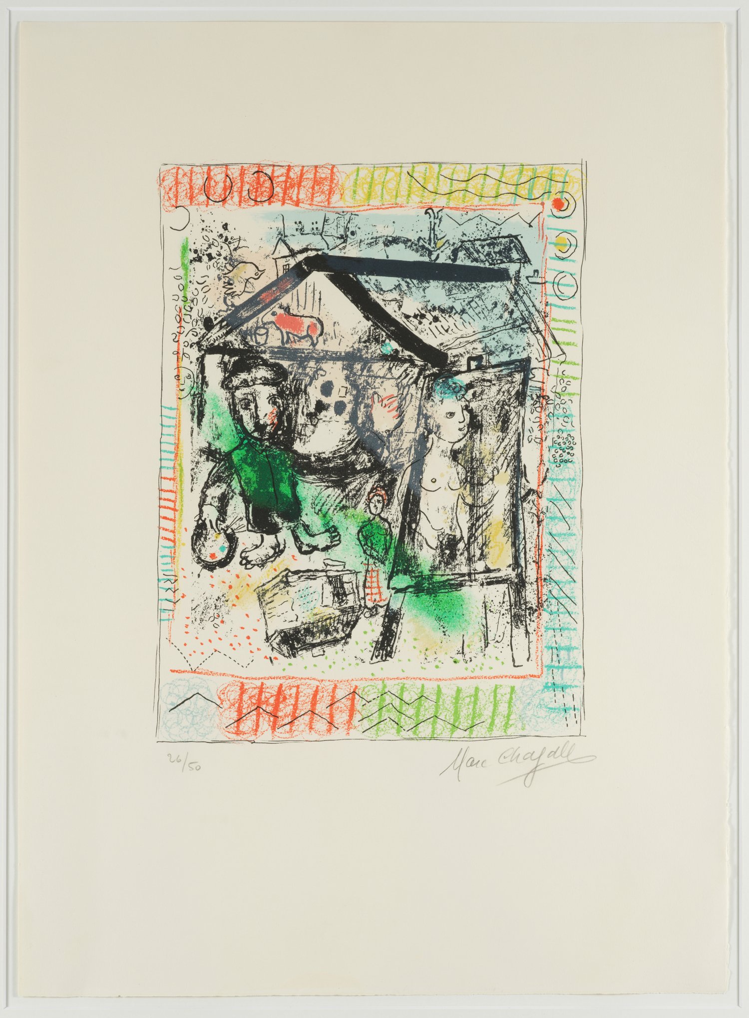 Farblithographie/Arches Velin (Wasserzeichen), 1969. Sign. und nummeriert 26/50. Neben den 50 Expl. der arabisch nummerierten und sign. Abzüge auf Velin d'Arches erschienen noch 25 sign. sowie mit römischen Ziffern nummerierte Künstlerabzüge. Wvz. Mourlot 604. Das Blatt ist unter Mirogard-Museumglas gerahmt. Darstellung 39 cm x 28,5 cm. Blatt 65 cm x 48 cm. Rahmen.