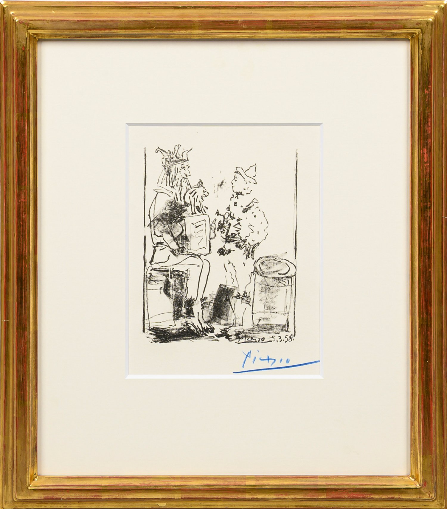 Lithographie/Velin, 1958. In Blau sign. oder bez.; Im Stein nochmals sign. und dat. 5.3.(19)58. Frontispiz aus: Leon Level, "Souvenirs d’un collectionneur", Alain C. Mazo Editeur, 1959 (Wvz. Cramer 99). Druck bei Mourlot, Paris. Wohl Expl. aus der unsign. und unnummerierten Auflage von 2000 Expl., hier wohl mit Gelegenheitssignatur. Wvz. Bloch 855; Mourlot 285. Blatt 31 cm x 22,8 cm. Rahmen.
