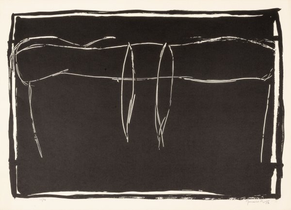 Lithographie/Guarro-Velin (Wasserzeichen). Sign., dat. (19)87 und nummeriert 12/50. Edition Poligrafa, Barcelona. Darstellung ca. 62 cm x 93,5 cm. Blatt 69,7 cm x 99 cm.