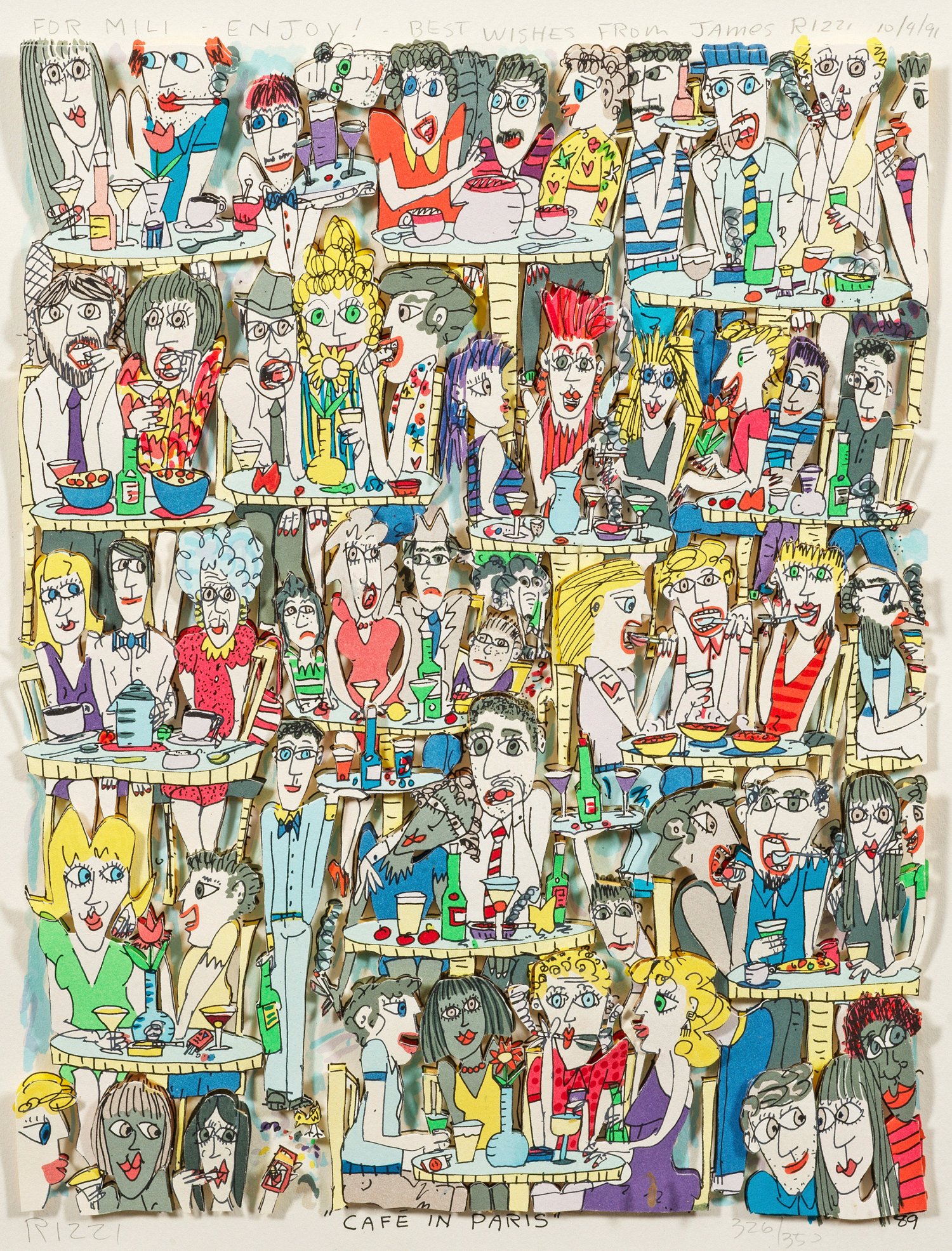 Serigraph (screenprint) in colours with 3D construction on light cardboard, 1989. Hand-signed, numbered 326/350 and with dated dedication 10/4/91. Printed title and date (19)89.