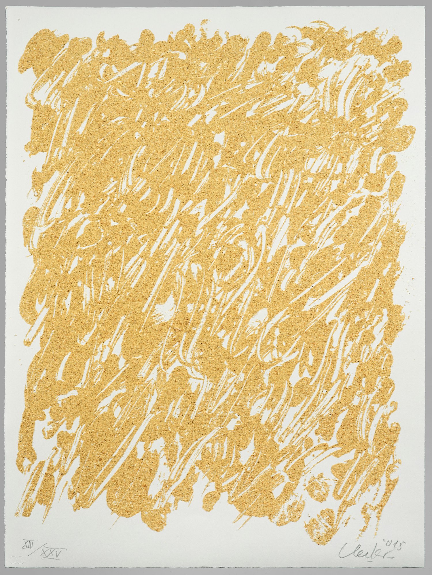 Terragrafie (heller Wüstensand)/Bütten, 2015. Sign., dat. 2015 und nummeriert XIII/XXV. Blindstempel des Verlegers. Blatt 2 (helle Variante) der 9-teiligen Mappe "Friedensgebote", erschienen in einer Auflage von 100 + XXV + E.A. Expl. bei Geuer & Geuer Art, Düsseldorf. Blatt 71,5 cm x 53,5 cm.