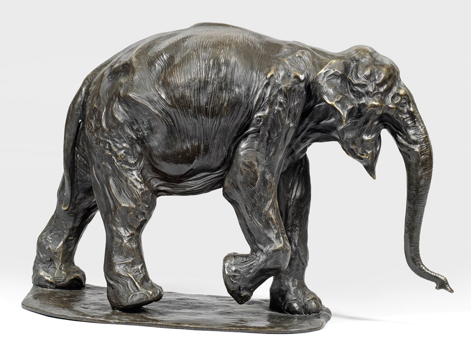 Bronze, dunkel patiniert. Posthumer, zeitgenössischer Guss des 21. Jhs. nach der um 1909 geschaffenen, bekannten Bronzeplastik. Rembrandt Bugatti, hochtalentierter Sohn des italienischen Möbelgestalters Carlo Bugatti, ging 1904 zunächst nach Paris, 1907 nach Antwerpen und wurde dort zu einem der bedeutendsten Tierbildhauer der Moderne. H. 44 cm.