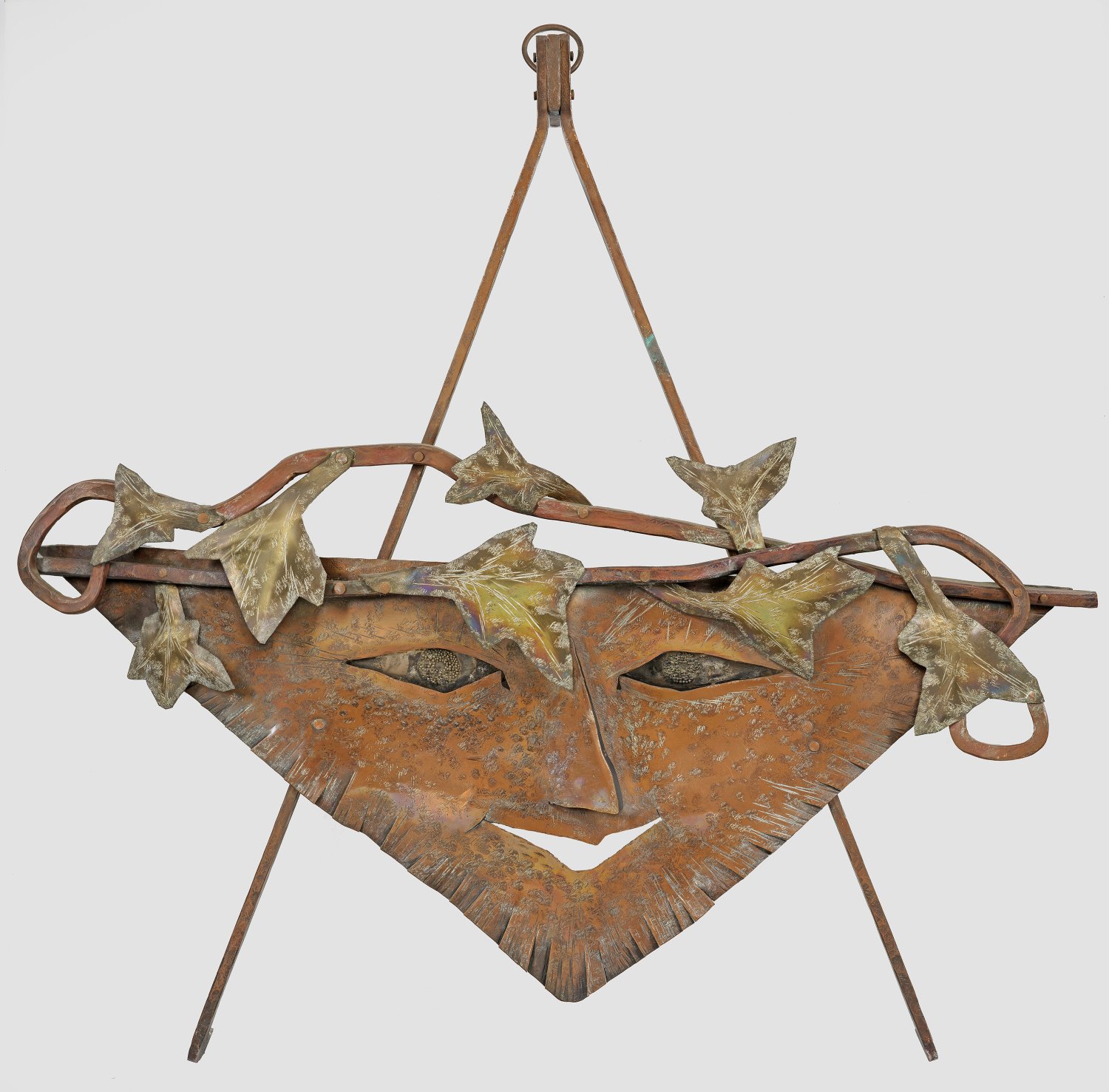 Messing, geschmiedet, geschnitten und ziseliert, partiell dunkel patiniert. In moderner Weise stilisierte, seltene, wohl in den 1960er-Jahren entstandene, bildhauerische Arbeit des vor allem als Gold- und Silberschmied bekannten Künstlers, der aber auch figürlich arbeitete. 1935 wurde Zeitner zum Professor ernannt und 1939 Leiter eines Meisterateliers für Goldschmiede an der Preußischen Akademie der Künste in Berlin. Nach Kriegsende ging er 1945 nach Lüneburg, wo er eine neue, eigene Goldschmiedewerkstatt gründete. 1954 erhielt er eine Silbermedaille der X. Triennale in Mailand, 1958 eine Auszeichnung auf der Weltausstellung in Brüssel, 1966 den Niedersächsischen Staatspreis für das gestaltende Handwerk und 1974 den Bayerischen Staatspreis. Stilistisch nahm Zeitner verschiedene Bewegungen auf, in den 1920er/30er Jahren Art Déco und Bauhaus-Einflüsse, spätere Arbeiten sind durch zunehmende Abstraktion gekennzeichnet. Zu den vergleichbareren Arbeiten Zeitners zählt der Kunstpreis "Silberne Maske", der 1969-1992 von der Hamburger Volksbühne vergeben wurde. Ca. 74 cm x 77 cm x 10 cm.