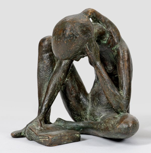 Bronze, dunkelbraun patiniert, 1984. Monogr. "K", dat. (19)84 u. nummeriert 2/10. Der aus einer Freiberger Holzbildhauerfamilie stammende Künstler absolvierte eine Ausbildung in Familientradition bis zum Meister (1947) und studierte an der Akademie in Dresden. Kohl übernahm die väterliche Werkstatt, dehnte den Schwerpunkt auf künstlerische Arbeit in Stein und Bronze aus, bis 1956 wirkte er in Berlin bei Hermann Henselmann als Leiter der Bildhauerwerkstatt am Wiederaufbau und der Umgestaltung der Stadt im Stil des "Sozialistischen Realismus" mit. Danach lebte und arbeitete er seit 1956 wieder in Freiberg, 1987 wurde ihm der Nationalpreis der DDR verliehen. Seit 1943 beteiligte sich Kohl an zahlreichen Ausstellungen, ab 1948 schuf er auch zahlreiche Arbeiten für den öffentlichen Raum. H. 15 cm.