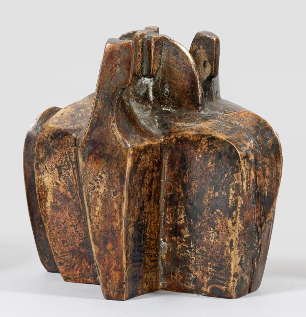 Bronze, dunkelbraun patiniert. Sign. mit Monogramm "HRoH" u. nummeriert 6/8. Moderne, kubistisch stilisierte, kompakt komponierte, vor 2007 entstandene Pferdegruppe Rohwedders, der 1954-1963 an der Werkkunstschule in Hannover, Akademie in Stuttgart und École Nationale Supérieure Des Beaux-Arts in Paris studierte, bevor er dauerhaft in Stuttgart ansässig wurde. H. 13,5 cm.