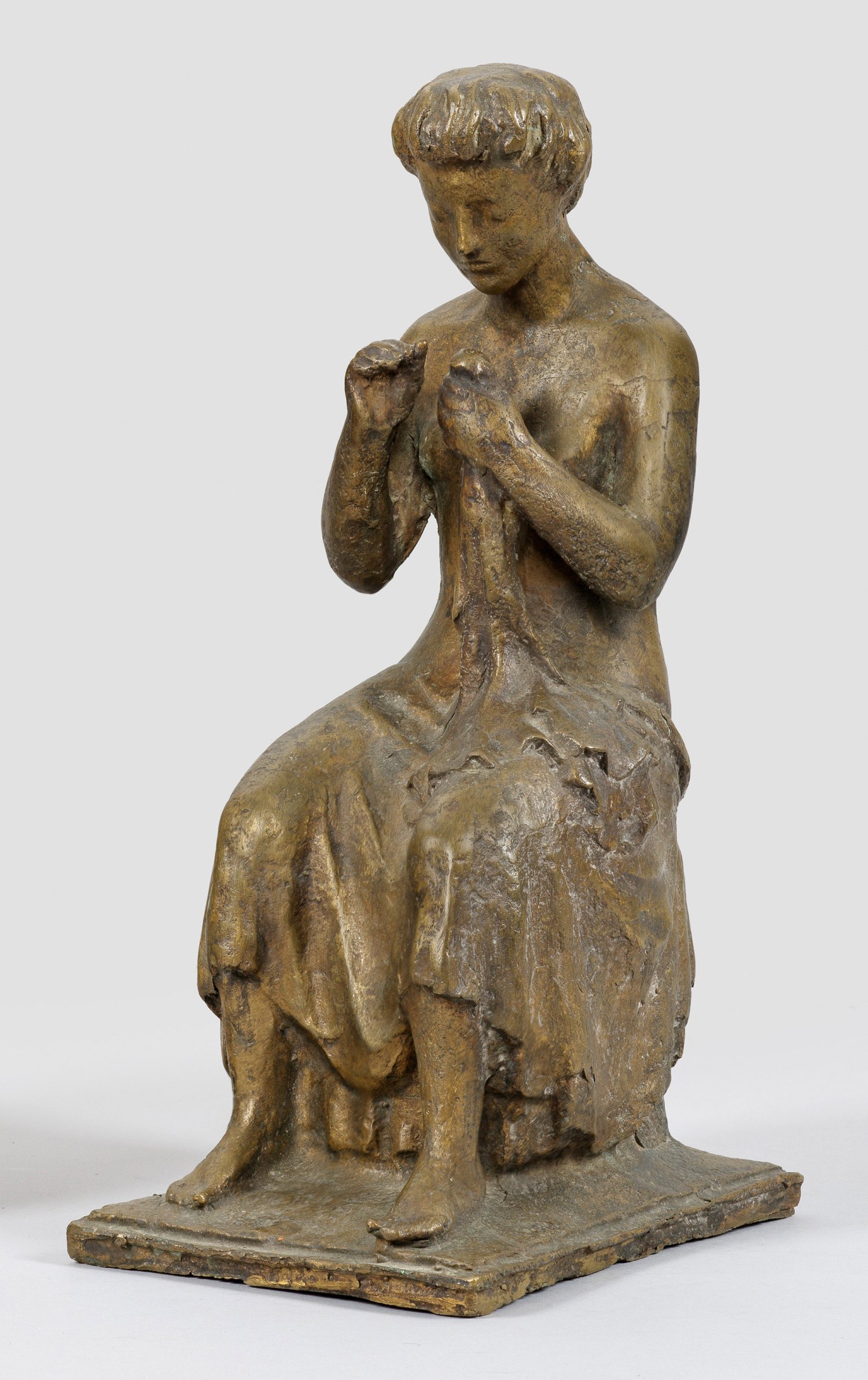 Bronze, goldbraun patiniert. Sign.; Seltene Arbeit Brenningers, der 1947-1965 Professor für Plastik an der Technischen Hochschule München war, überdies 1961-1978 Professor an der Akademie der Bildenden Künste München. Außer in Deutschland stellte u. a. in Rom, Paris, Antwerpen, Luzern, Chile, Peru, Brasilien aus, zahlreiche seiner Werke befinden sich im öffentlichen Raum. 33 cm x 13,5 cm x 18,5 cm.