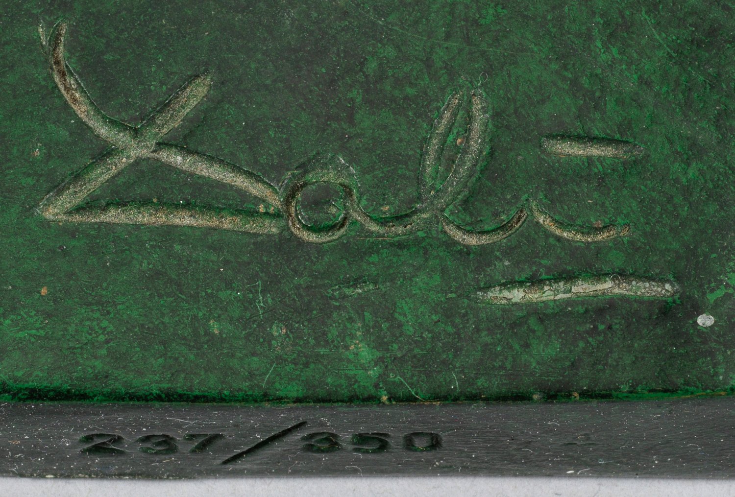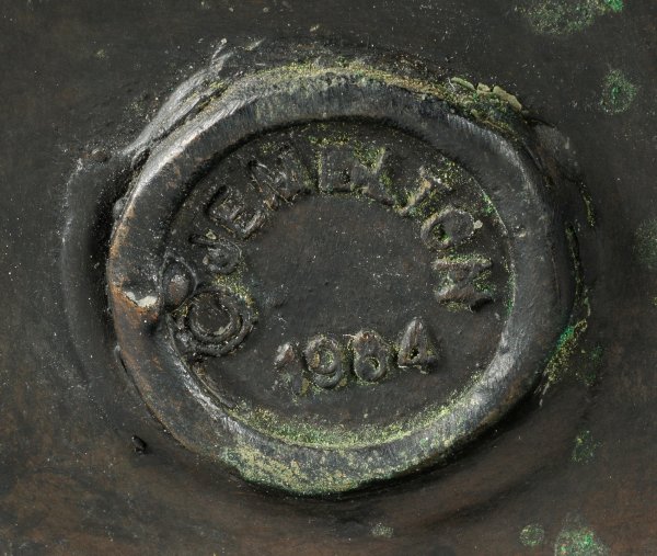 Bronze, grün und braun patiniert, 1977/84. Künstler-Bez.; Gießermarke der Gießerei Perseo, Mendrisio/Schweiz, sowie Marke des Herausgebers Jamelton mit Dat. 1984, nummeriert 237/350. Auflage 350 Exemplare plus 35 EA in dieser Größe in drei verschiedenen Patinierungen. Geschaffen 1977, gegossen erstmals 1984, dieser Guss wohl um 2000. H. 51 cm.