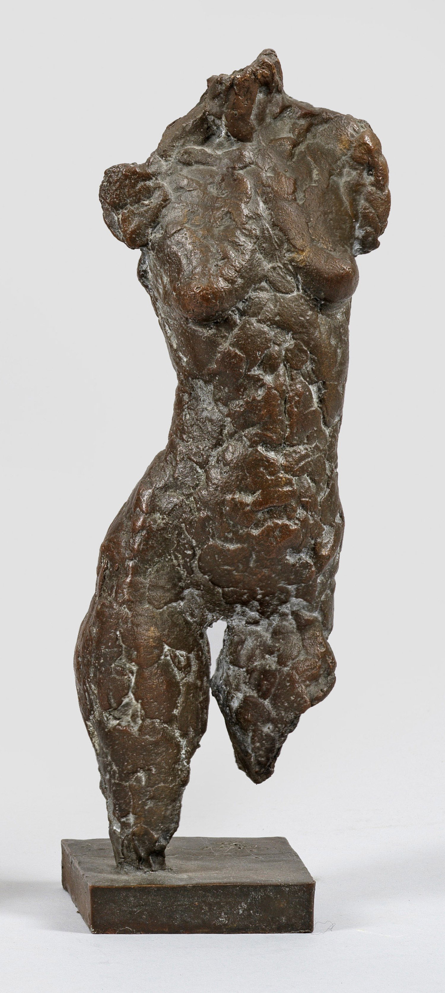 Bronze, dunkelbraun patiniert. Sign. u. nummeriert 9/20. Expressive, zeitgenössische Aktplastik mit fragmentierter, aufgelöster Darstellung. Ebert studierte 1976-1982 an der Akademie in München bei Erich Koch und lernte im Atelier von Hans Wimmer. Neben Kleinplastiken befasst sich Ebert mit großen Arbeiten für den öffentlichen Raum in Deutschland und den Niederlanden. H. 21,5 cm.