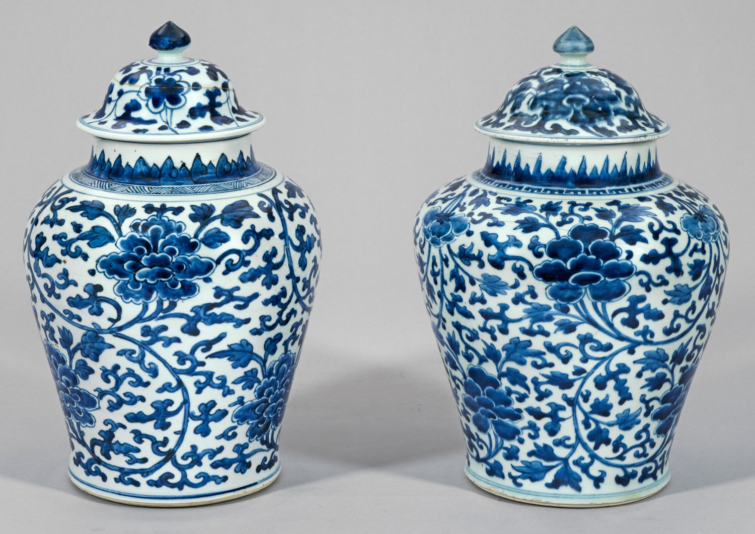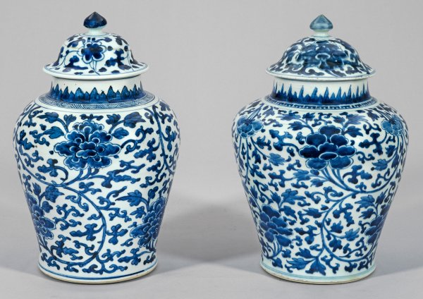 Lot 2820: Paar Blauweiß-Deckelvasen