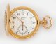 A hunting case pocket watch by C. Dégallier, Geneve, circa 1900. Case and dome in 18 k gold. Gilt mechanical movement with crown wind. No. 6365.