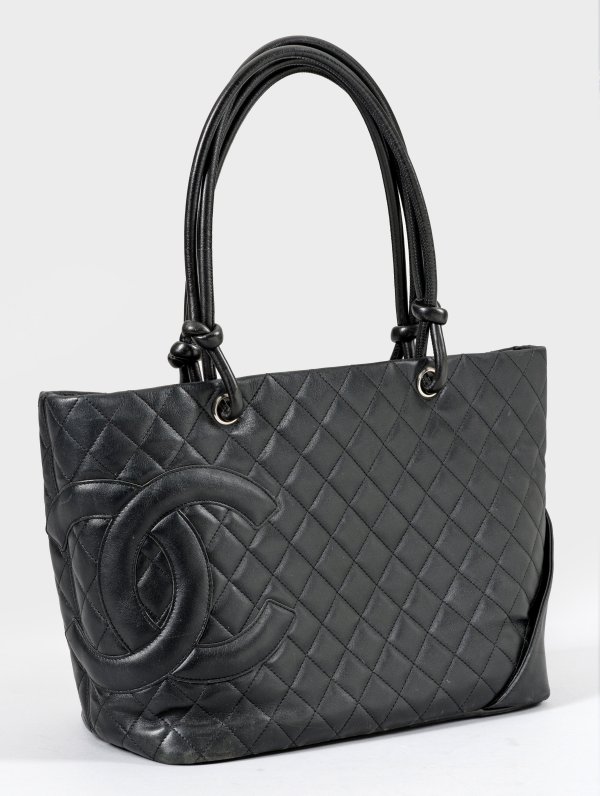 A black leather "Cambon" bag by Chanel. Signs of use. Stains. Manufacturer's mark.