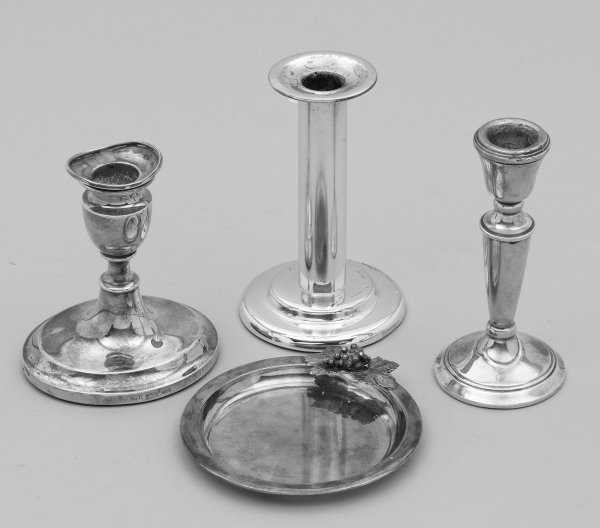 Lot 3012: Drei Kerzenhalter und ein Untersetzer