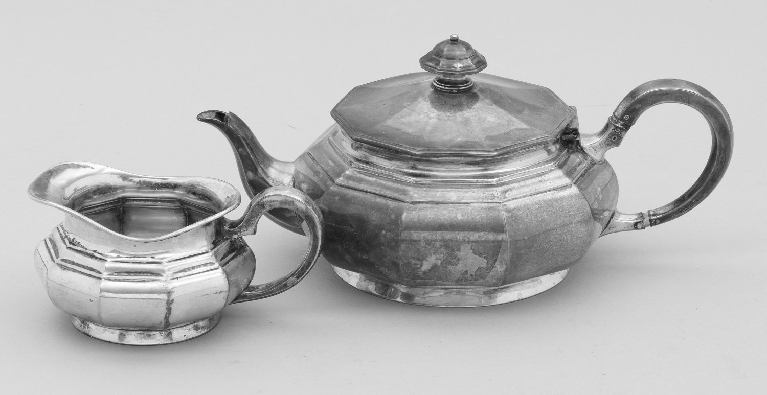 A German silver tea pot and creamer. Standard marks 800. Assay and maker´s marks.