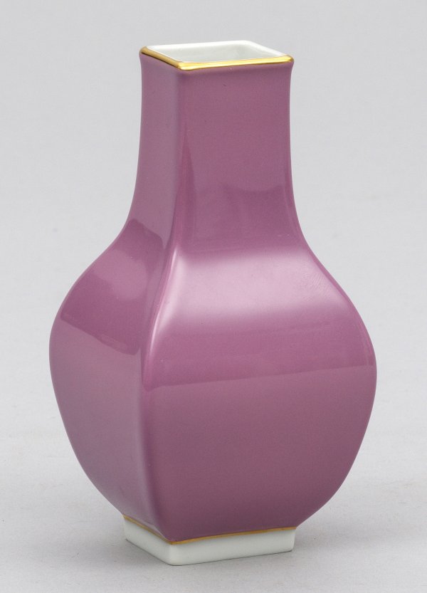 Vierpassige Balusterform. Purpurfarbener Fond mit Goldrand. Schwertermarke mit goldenem Jubiläumssignet 1710 - 2010. H. 13 cm.