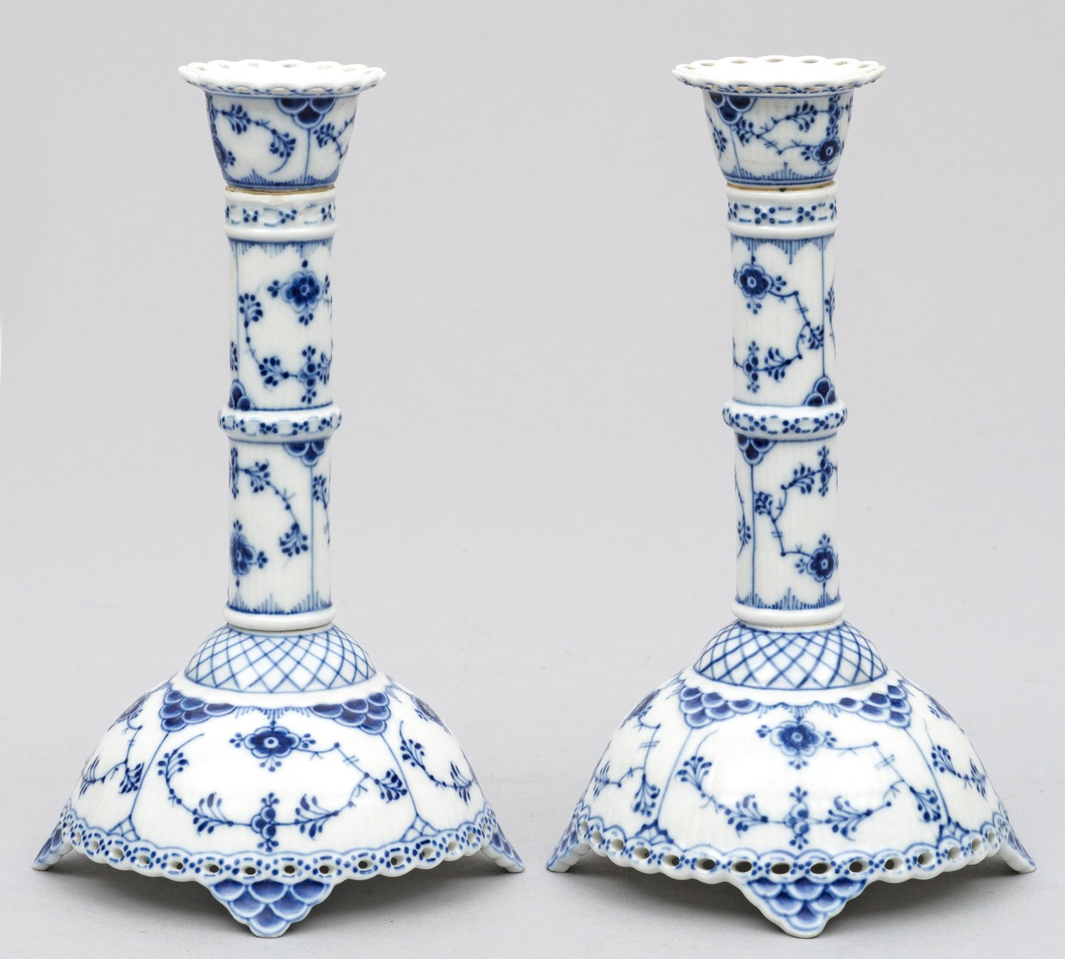 Lot 3133: Paar Kerzenleuchter "Musselmalet Vollspitze"