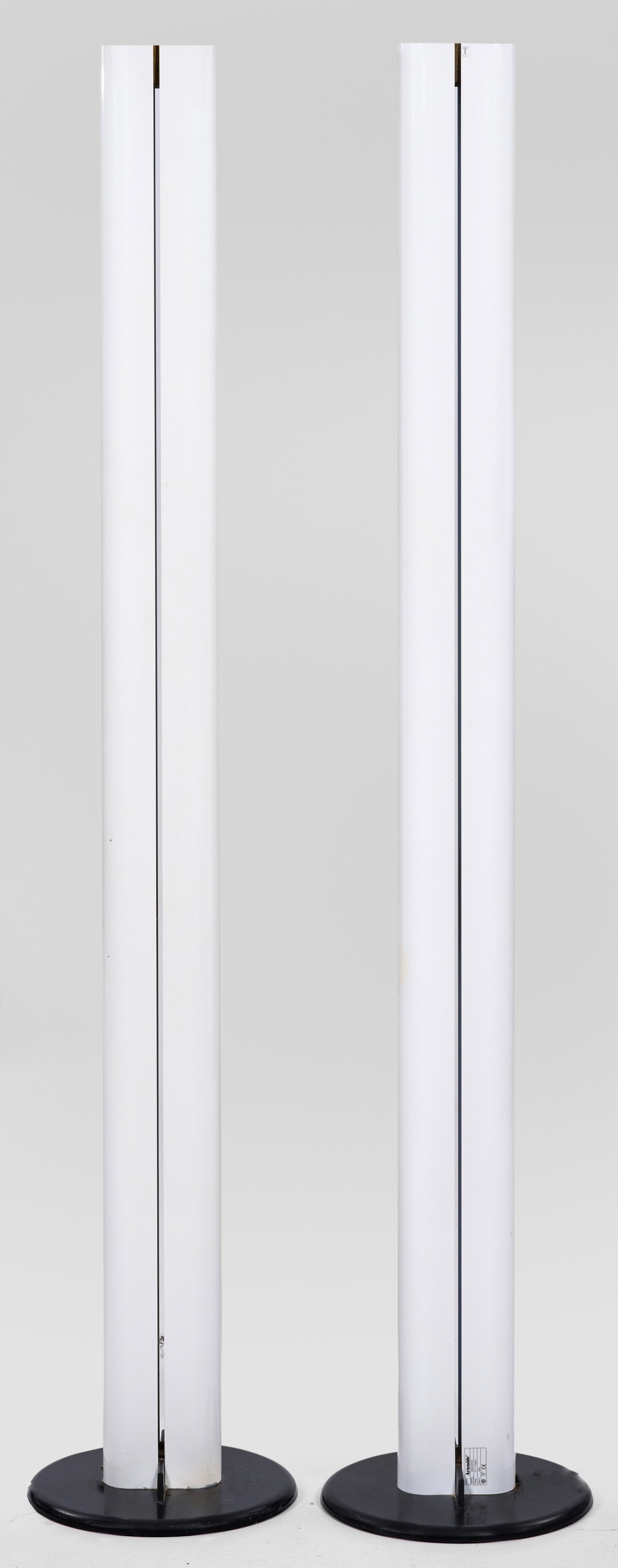 1-flg.; Metall, weiß lackiert und schwarzer Kunststoff. Über flachem Rundsockel gestreckter, abgerundeter Korpus mit senkrechten Leuchtschlitzen. Entw. G. F. Frattini, 1979. Herstellerzeichen. Elektrifiziert. H. 182 cm.