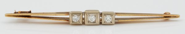 Brooch set with 3 diamonds approx. 0,60 ct., in 14 k gold.